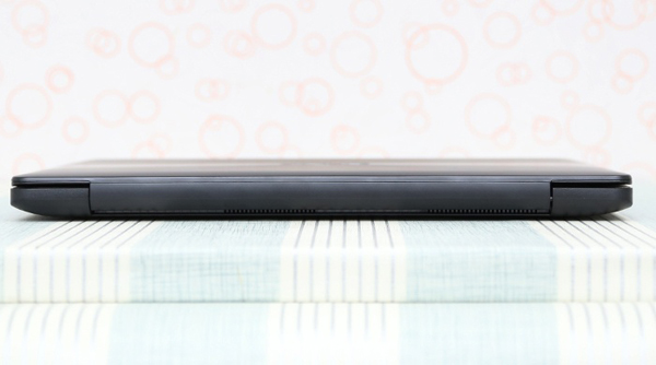 Vẫn giữ nét thiết kế rất đặc trưng, mặt lưng của Asus X453MA là những vân tròn đồng tâm theo phong cách Zenbook giúp máy sáng bóng, sang trọng hơn. Máy được vát mỏng về phía trước kết hợp với 4 góc bo tròn giúp thiết bị trong nhỏ gọn, thanh mảnh hơn thực tế.